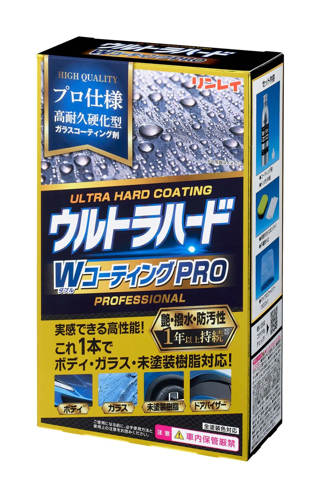 プロレベルのコーティングに匹敵するウルトラハードシリーズの最新作。愛車に長期間の美観維持を求め、手軽なウォーターコーティングに満足できず、手間を掛けずにクルマ全体を1つの製品でカバーしたいというニーズに合致する。 今度はプロ並の超耐久!? “W”のコンセプトも継続!