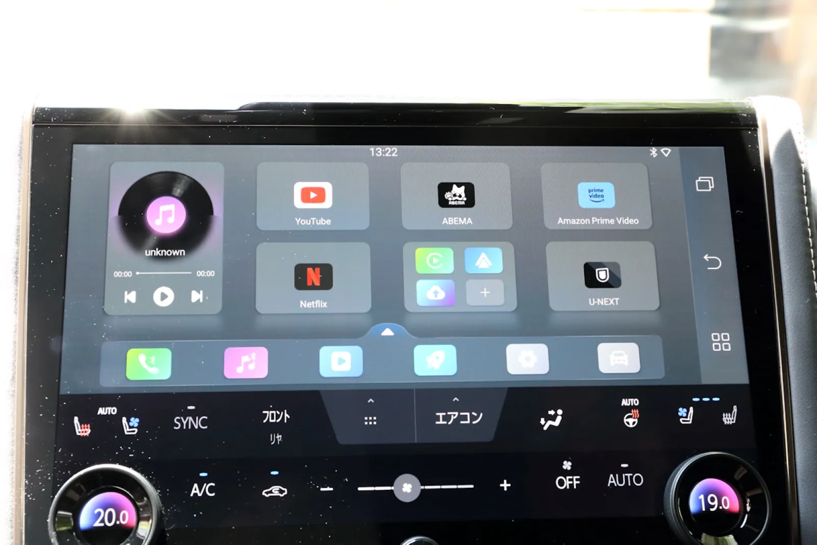 U2KITと車載ナビやディスプレイオーディオとの接続は、付属のUSBケーブルで接続するだけ。後は車載のWi-Fiルーターやスマホのテザリングでネットワークに接続すれば、あらかじめインストール済みの5つの定番動画アプリ(YouTube、PrimeVideo、Netflix、U-NEXT、ABEMA)をすぐに楽しむことができるのだ。また、Bluetoothを介してApple CarPlayやAndroid AUTOへのワイヤレス接続が可能なほか、U2KIT本体にUSB-Aポートを内蔵。USBメモリやストレージなどに保存されている動画や音楽もオフラインでダイレクトに再生することも可能なのだ。