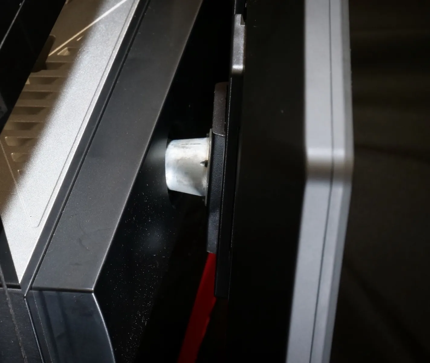 DMX7509XSのフローティングメカニズムが、ちょっと凝っている。強固なボールジョイント式で、上下だけでなく左右の角度も調整可能。さらにマウント部分の移動で上下高さの調整もできる。
