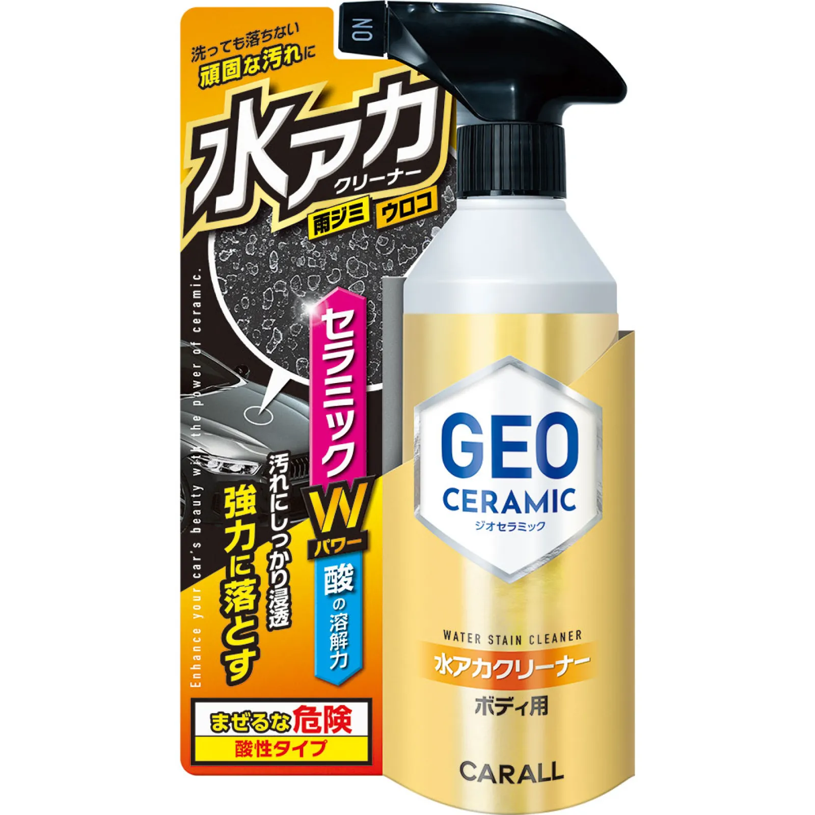 愛車を美しく保つ上で最大の敵は、何と言ってもボディに染み付いた「水アカ」だろう。特にドアミラーの下やドアハンドルの付け根など、水が通り道となる場所には、通常のシャンプー洗車ではビクともしない黒ずんだ筋や白い鱗状のシミが溜まりやすい。そこで今回テストするのがCARALLの「ジオセラミック 水アカクリーナー」だ。本製品は、セラミック成分を配合しつつ、塗装面を傷めにくい「化学分解」と「微細研磨」のハイブリッド効果で効果的に水垢を除去できるのが特徴だ。