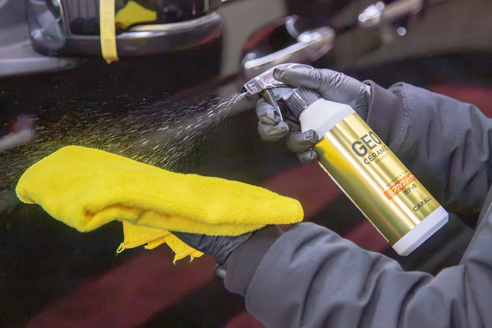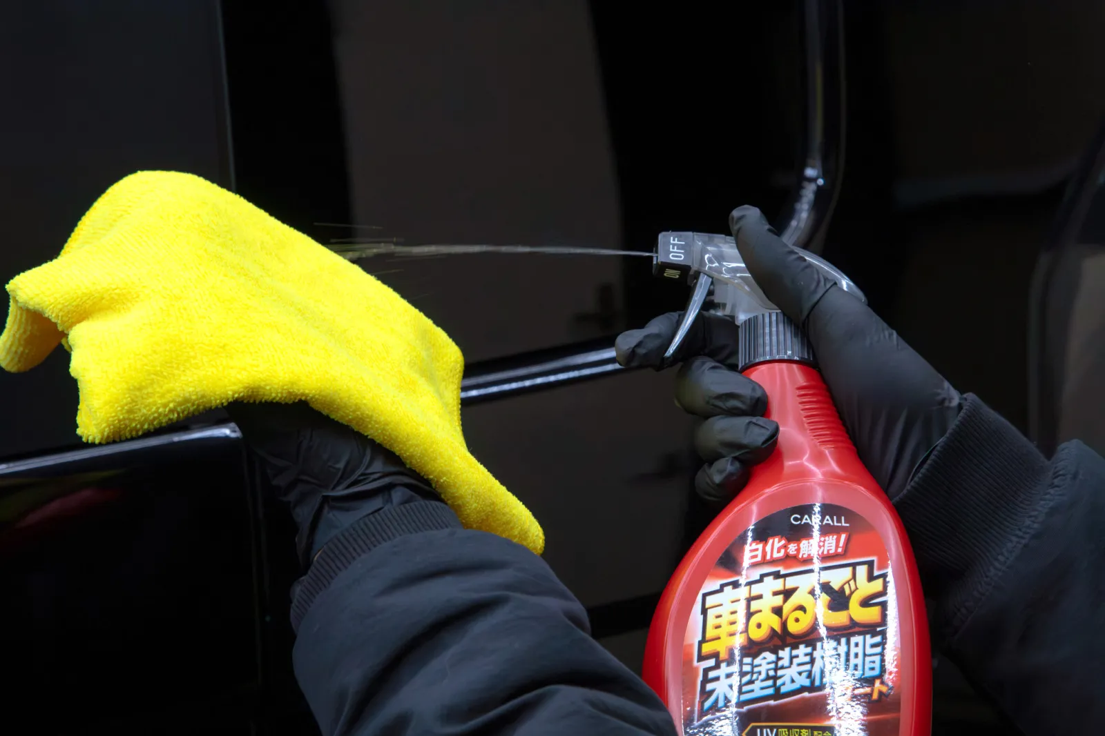 キレイなボディに直接スプレーして使用する。