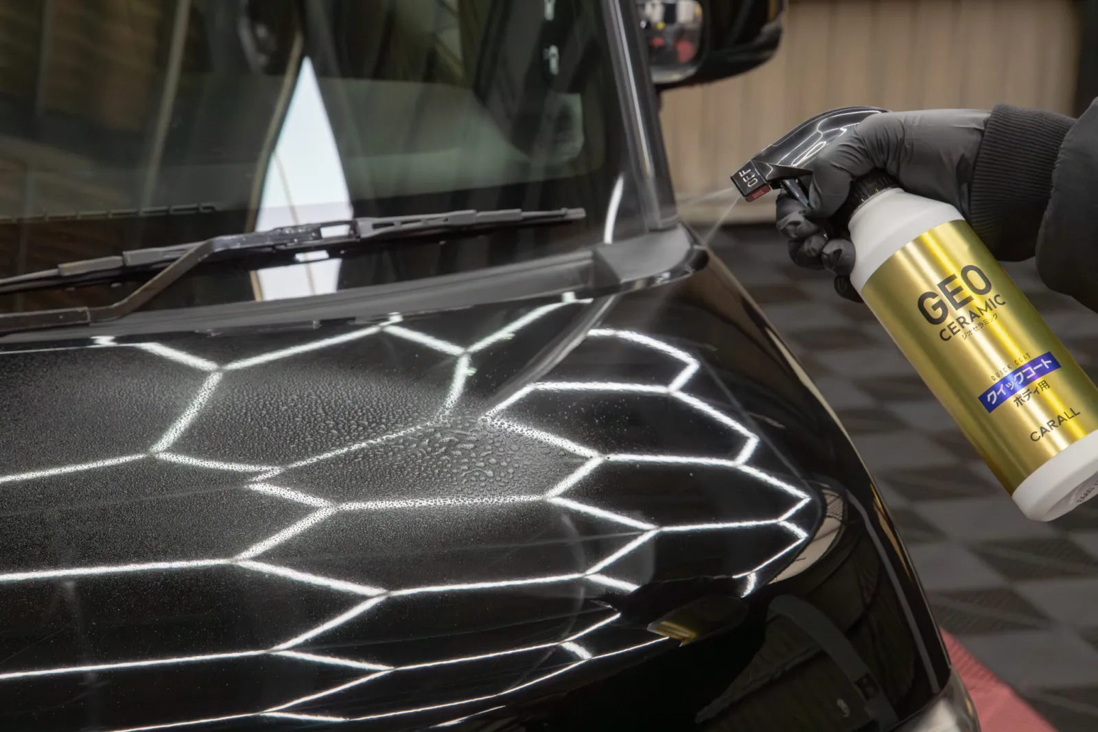 下地を整えた後に、オススメしたいのが同シリーズの「ジオセラミック クイックコート」だ。セラミック系コーティング剤は従来のガラス系よりも硬質な輝きと高い耐久性を特徴としたコーティング剤であるが、これまではセラミック系コート剤といえばムラになりやすかったり、拭き取るのが重く施工性が良くないといったネガティブなイメージもあったのが事実だ。しかしこの「ジオセラミック クイックコート」ではそれらの問題をすべてクリア。