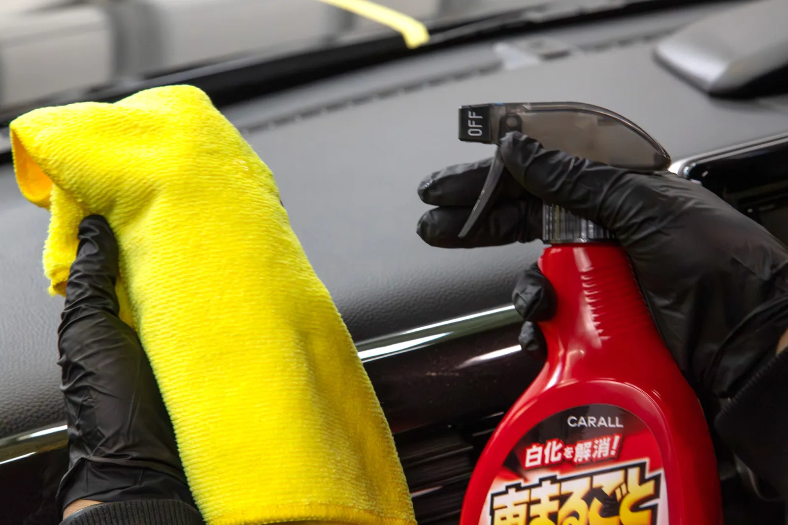 本製品はなんと車内にも使用可能。ただしシートやハンドルなど滑ると危ない箇所には使用できない。