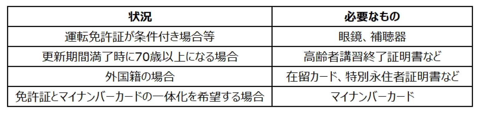 運転免許更新手続きのための必要書類