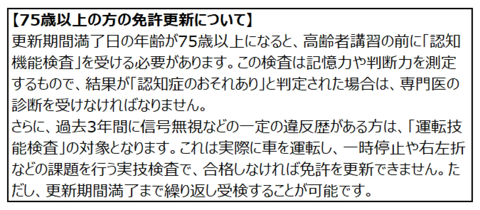 高齢者運転者の免許更新について