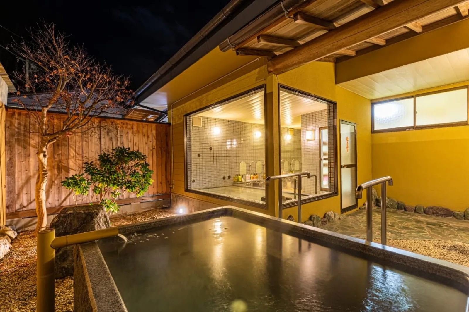 露天風呂付きの部屋でくつろぐ/ ちちぶ温泉はなのや