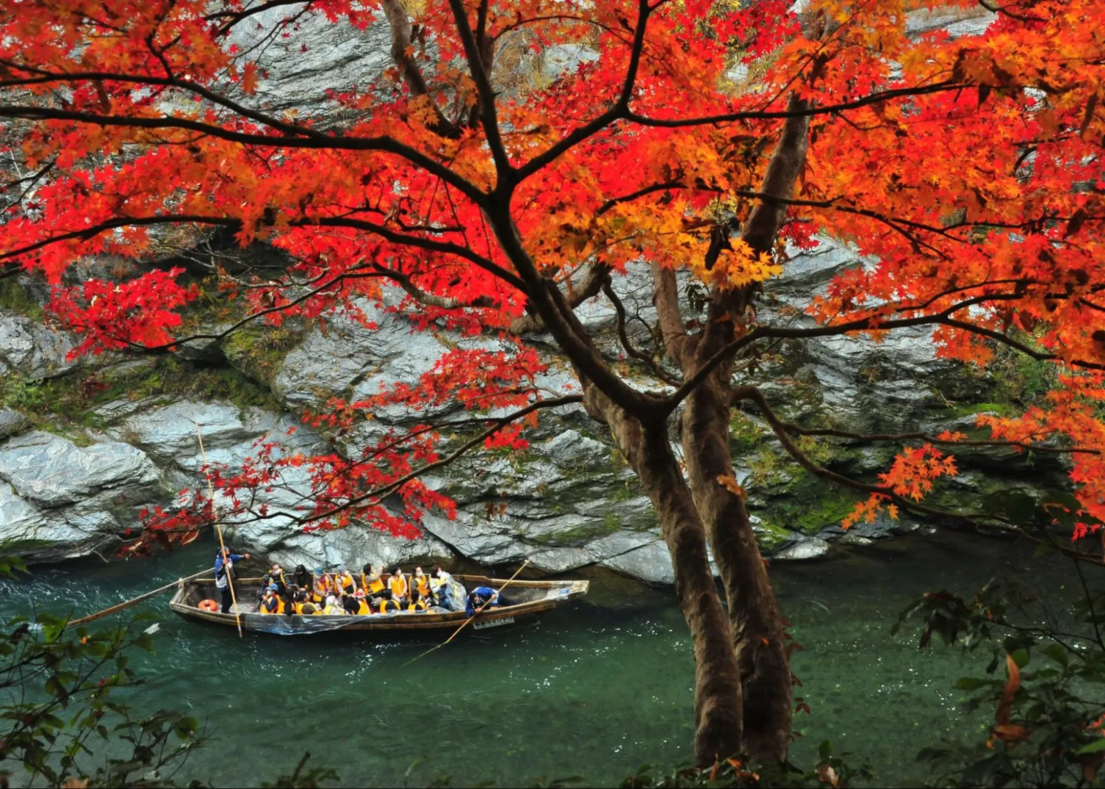 長瀞は川遊びだけでなく、紅葉の名所としても人気。紅葉狩りを満喫できる公園もあります。ラインくだりとあわせて、散策も楽しんでみてくださいね。