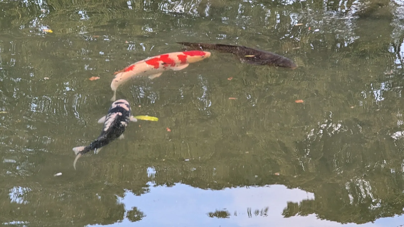 立派な日本庭園に大きな錦鯉が優雅に泳いでいました。 雨上がりだったので、足元は悪かったですがお客様が少なくて受付の方が丁寧に説明、案内してくださいました。 5月頃には菖蒲の花が咲き誇り、普段入れない建物内でお茶会も開かれるそうです。