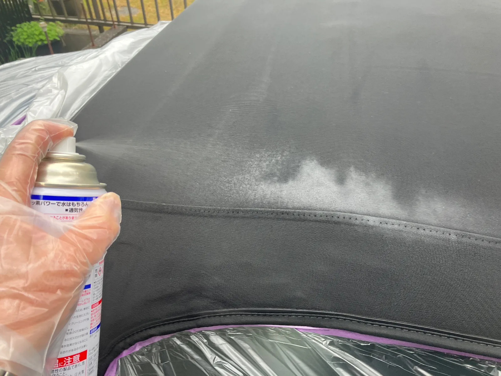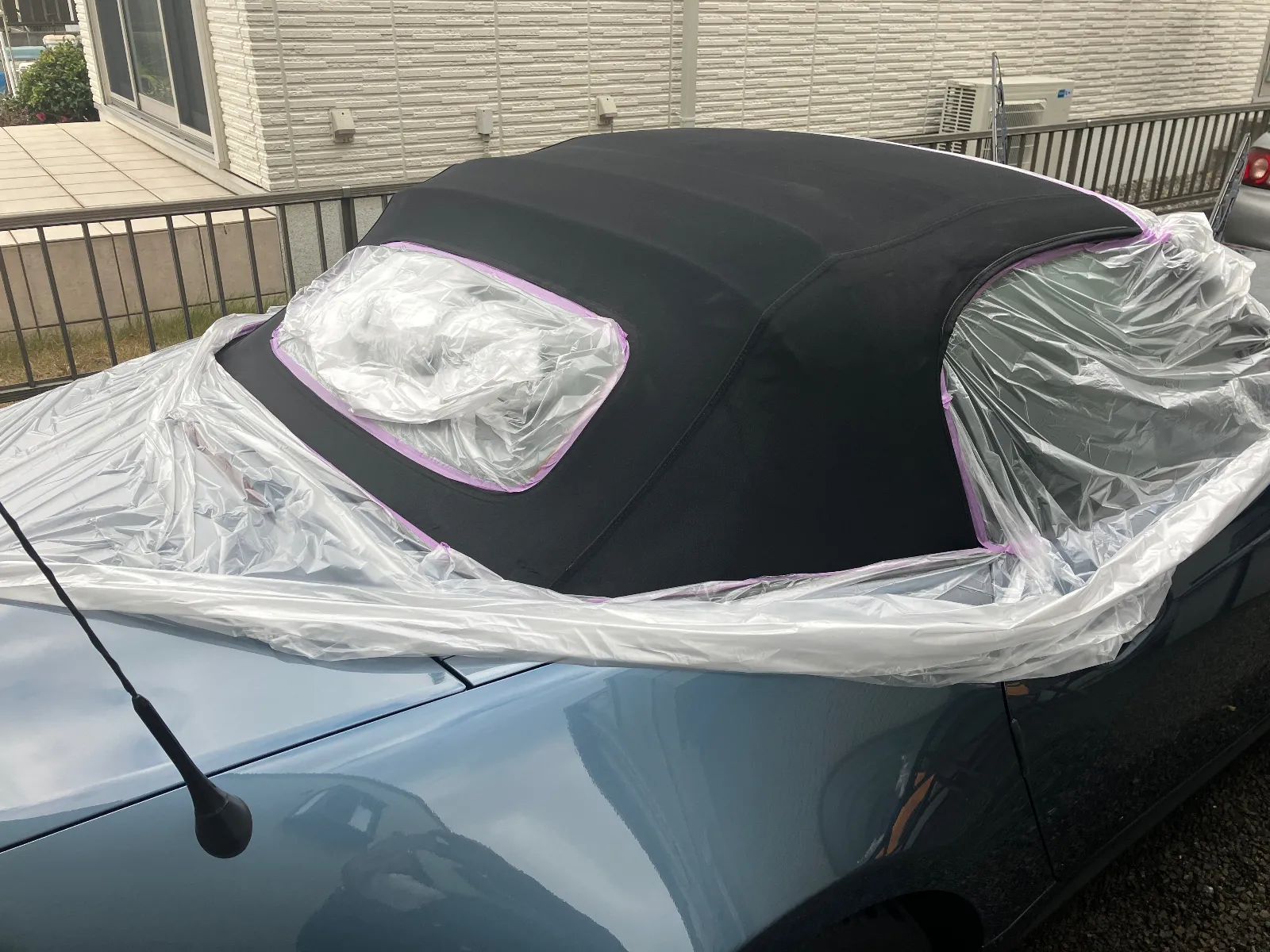 NDの幌の撥水が完全に落ちてしまった為、 撥水剤を塗ります。専用の幌用撥水剤もありますが、市販の撥水剤スプレーで大丈夫。雨回数で言うと5回くらいはそれなりに持ちます。 シリコンが主成分なので、雨上がりは、ガラスにシリコンが流れた後ができます。 窓ガラス用の撥水ガラスコートを使っても行けるのではないか思いますが、他のもので試してみたいですね。
