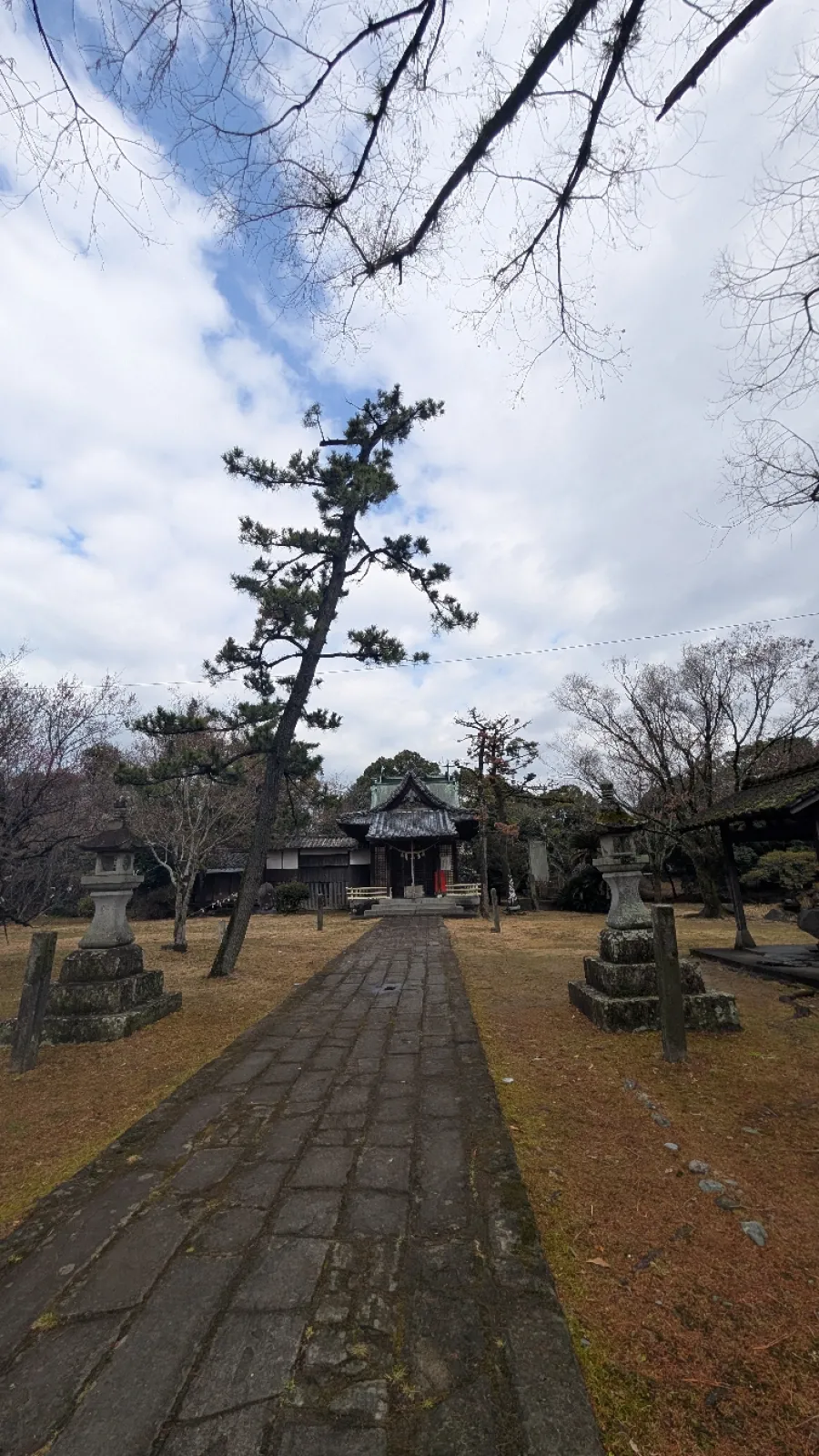 松浜軒の受付の方にオススメされ参拝⛩️ 松浜軒の駐車場のすぐ隣にあり、とても古い梅の木があるとのことでしたが、まだあまり咲いていませんでした。