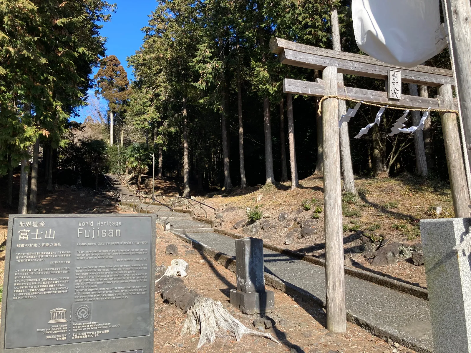 人穴神社に参拝します。 鳥居の向こうは富士山、御神体を崇めます。
