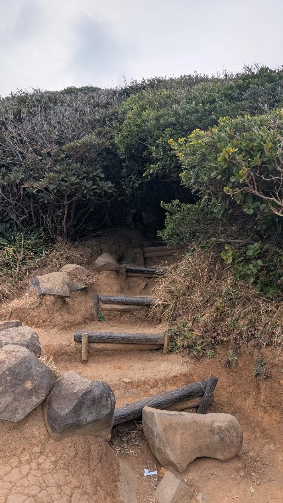 木に囲まれた階段を登ると、展望台があって海を見渡せる🌊 展望台までの距離は短いですが、階段は一段一段高さも違ってなかなかハードです。 スニーカー必須です。