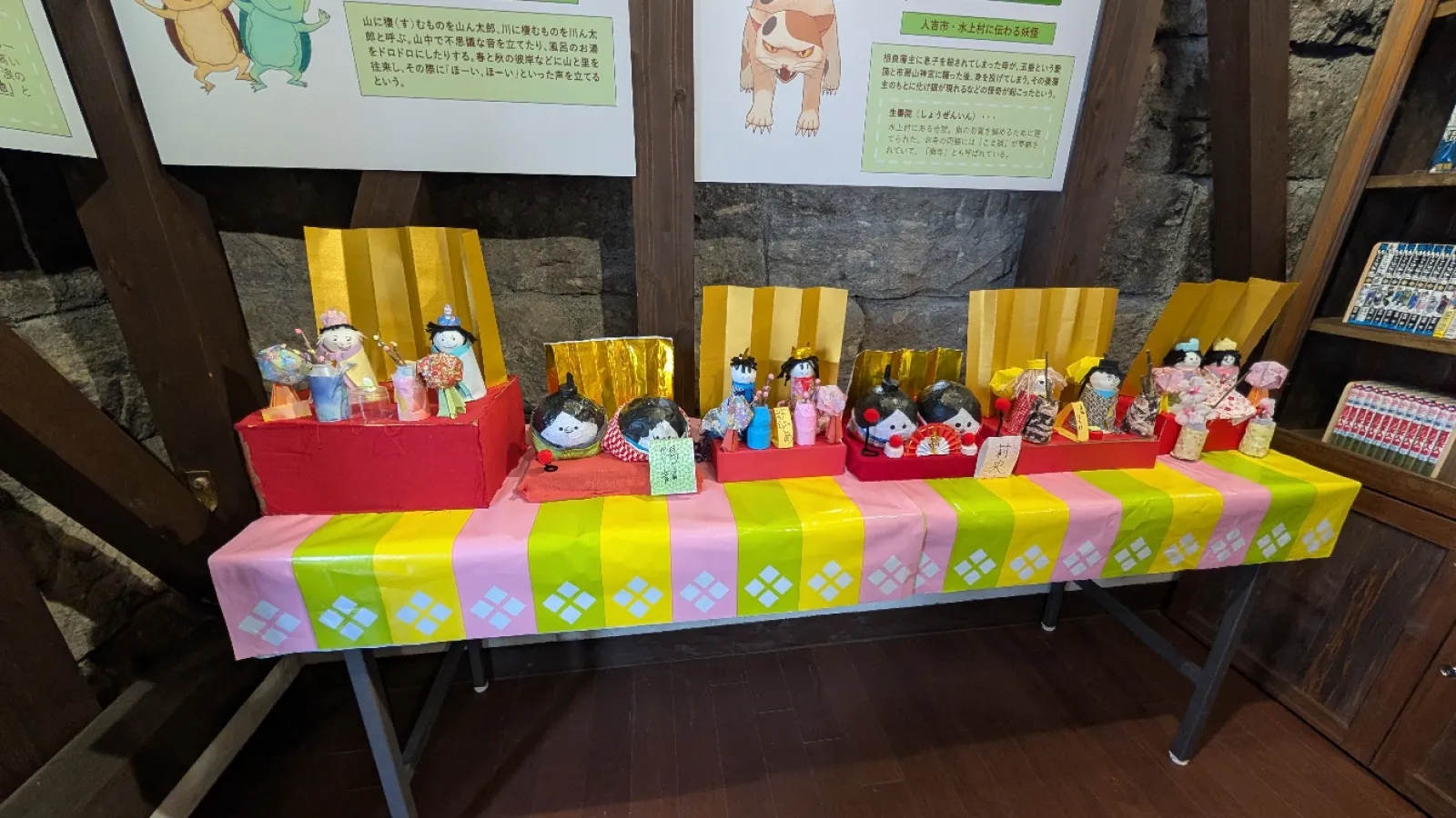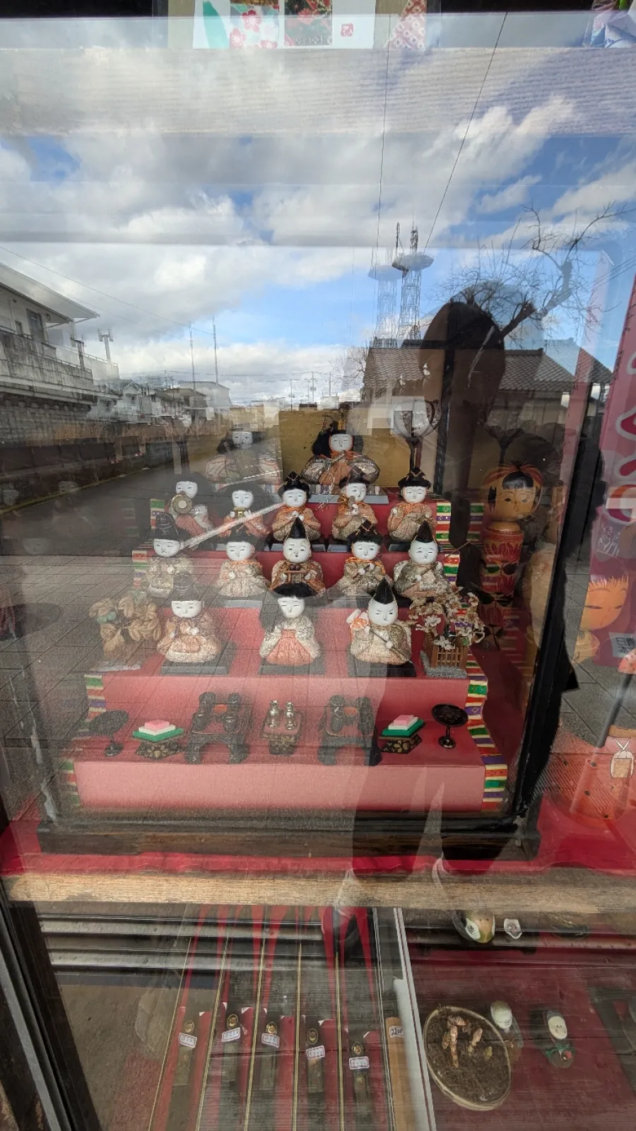 レトロな街並みを散策すると、いろいろな表情のお雛様が見られます。 古いものや、可愛らしいもの、子どもたちの手作りと思われるものまでたくさん飾ってありました。